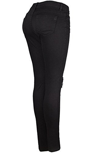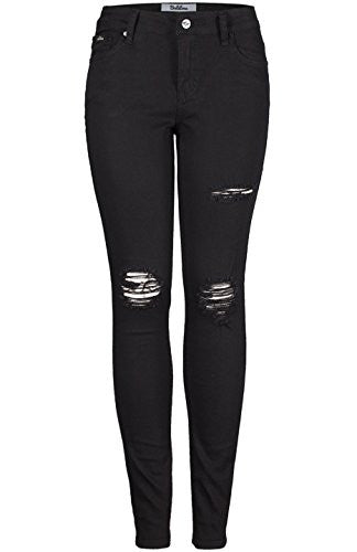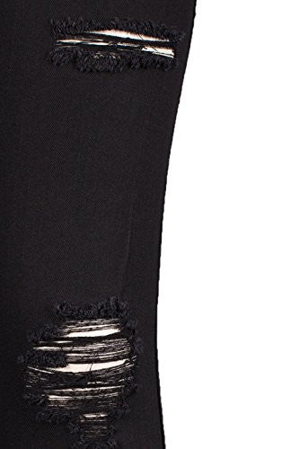 2LUV Women's Mid Rise Distressed Skinny Jeans Ripped on Thigh&Knee black1 9