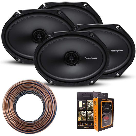 (4) Rockford R168X2 Prime 6x8 Inches Full Range Coaxial Speaker with 18 Gauge 100 FT Speaker Wire and Free Mobile Holder