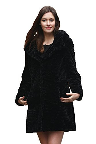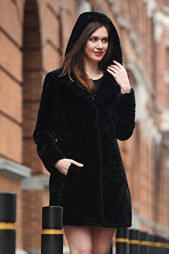 Adelaqueen Women's Winter Persian Lamb Fabulous Faux Fur Coat Stylish Outerwear Black With Hood Size S