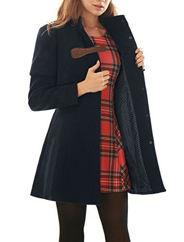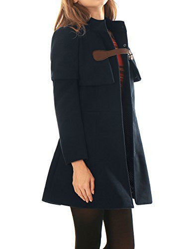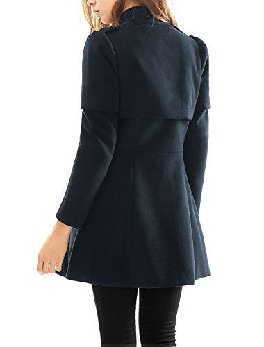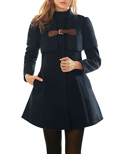 Allegra K Women Buckle fastening Worsted Caped Flare Long Coat Blue S