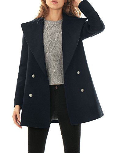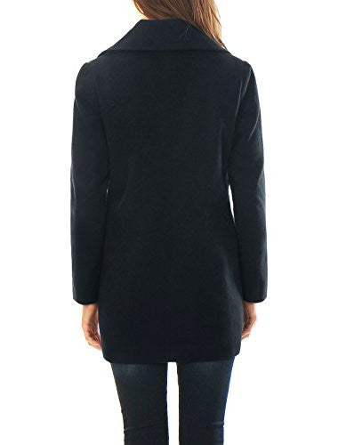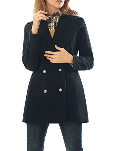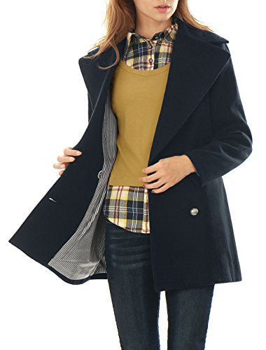 Allegra K Women Turn Down Collar Double Breasted Worsted Coat Blue M