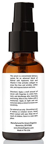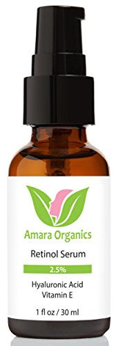 Amara Organics Retinol Serum 2.5% with Hyaluronic Acid & Vitamin E, 1 fl. oz.