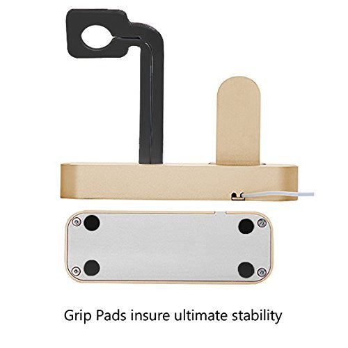 Apple Watch Stand, [UniqueKay] 2-1 Premium Aluminum Charging Dock Station Stand Holder for Apple Watch Series 1 Apple Watch Series 2 & iPhone 7 / 7plus 5/ 5S/ 6/ 6 Plus (Gold)