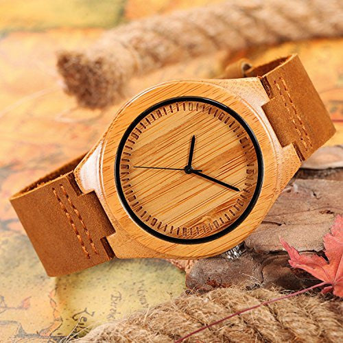 - REAL BAMBOO CASE: No emblem on the face of the watch, This minimal design captures the natural essence of traditional bamboo, with a light, subtle aroma and glass front for protection. The use of bamboo materials is also eco-friendly.