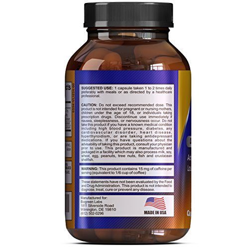Weight Loss Supplement with Green Tea + EGCg With Polyphenols and Antioxidants - Boosts Metabolism and Burns Fat - Pure Natural Capsules For Men and Women By Biogreen Labs - 500 mg